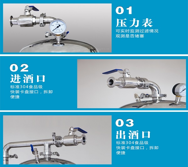 (4)、精濾精度達到0.1微米以下,過濾后的酒清澈透明,可直接灌裝裝瓶。