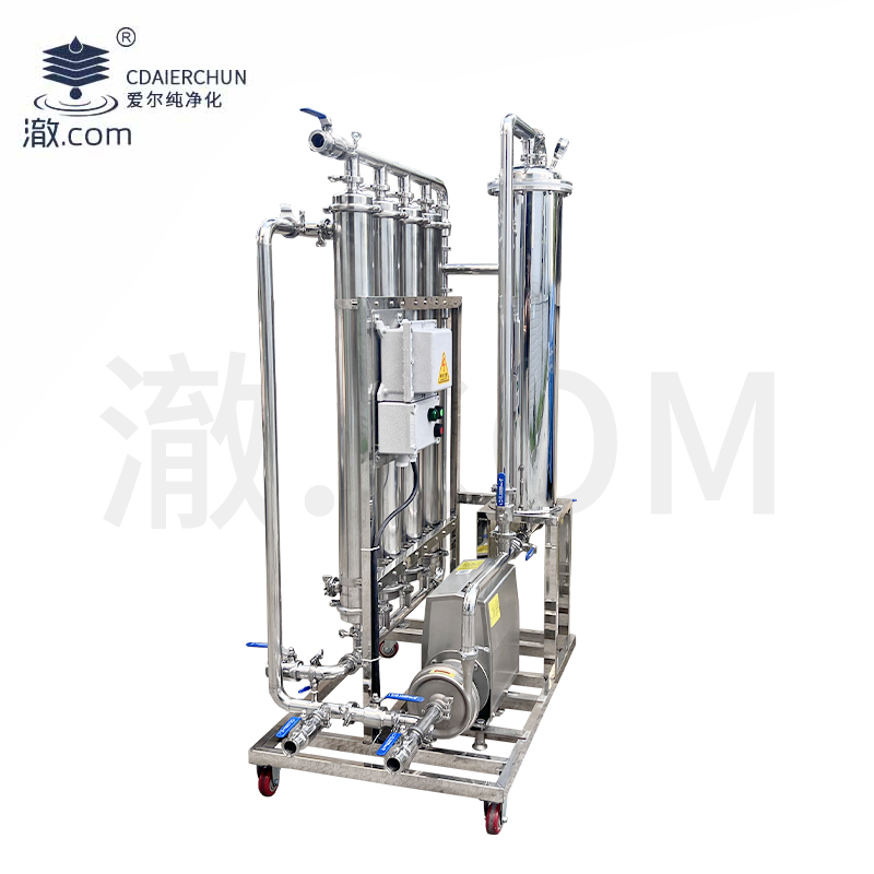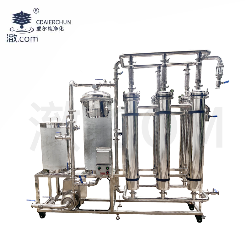 該設(shè)備采用公司最新研發(fā)的納米級無損分離技術(shù),利用納米級細小微孔分離出酒體中不穩(wěn)定、容易造成高低度酒低溫反復(fù)渾濁、失光、沉淀的油酸乙酯、亞油酸乙酯等大分子,然后通過精準(zhǔn)高效的納米微孔攔截,去除不抗凍、低溫易反復(fù)渾濁的幾種大分子物質(zhì),讓高低度酒在零下十五度低溫情況下保持清澈透明、不渾濁失光。過濾后不損傷酒體香脂成分及各項指標(biāo),不損傷酒體豐富的酒花,不損傷口感,過濾后可直接罐裝裝瓶。相比于傳統(tǒng)冷凍過濾設(shè)備,該設(shè)備成本更低、耗能更低,操作簡單方便。pg